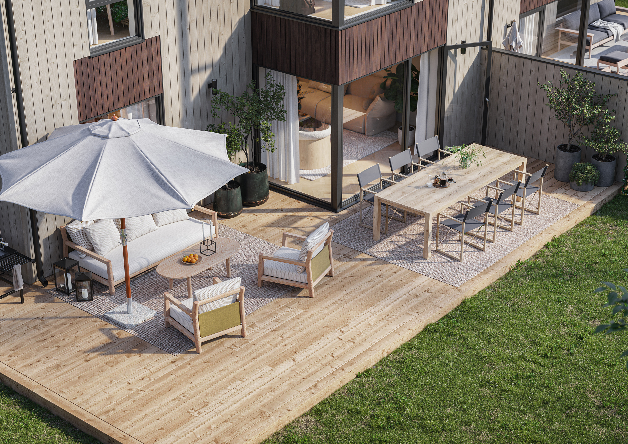 Husen placeras med tydliga tomtgränser och generösa privata uteplatser. Området öppnar sig mot den intilliggande naturen – alla bostäder vetter mot skogspartiet vilket skapar ett avskilt och lugnt läge med grönska som naturlig avgränsning. Till varje parhus hör en stor tomt med ensam nyttjanderätt samt en uteplats planerad för att fånga kvällssolen, vilket skapar en privat och trivsam atmosfär för umgänge och avkoppling.